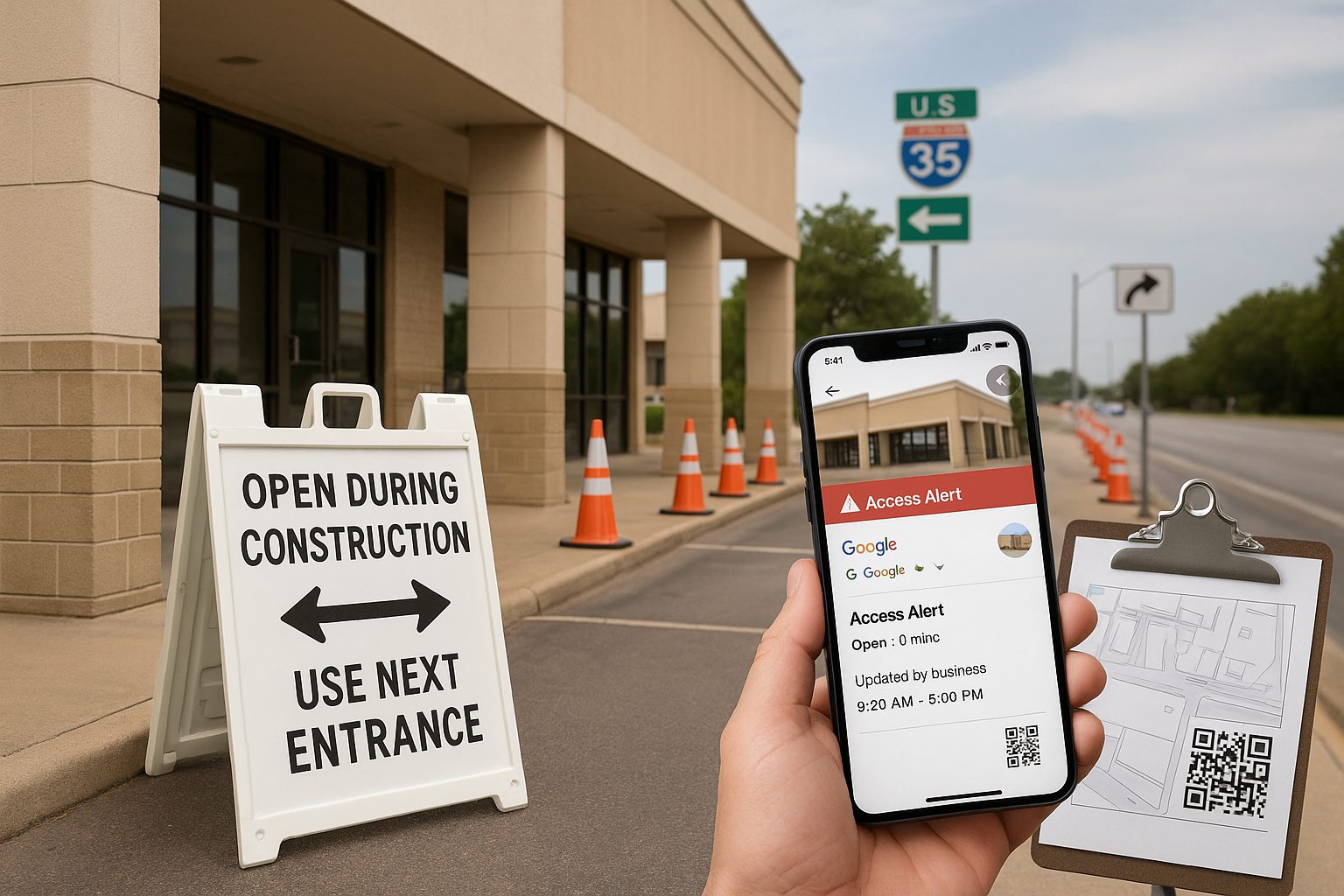 - Google Business Profile updates: Post Access Alerts (“Use NB frontage; turn at 53rd”) and adjust hours for closure nights.