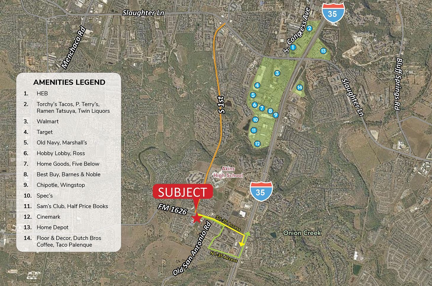 LOCATION: On the SE corner of FM 1625 and Conroy Ln (S 1st) +/- 1.75 miles east of Manchaca Rd and .5 miles west of IH 35; just 9 miles south of Downtown Austin. Cell tower not included.